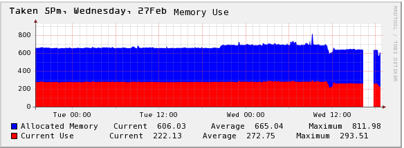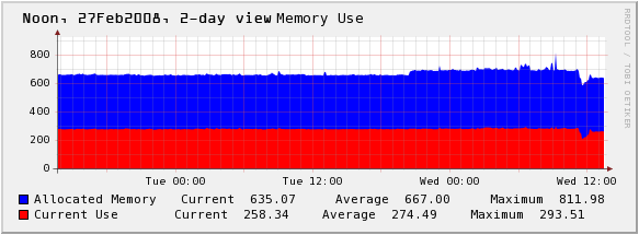 Here's our memory usage, taken at noon,2-day view. This looks much weirder than other views, which were much more constant.